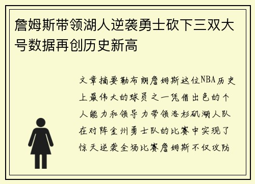文章摘要:勒布朗·詹姆斯,这位NBA历史...