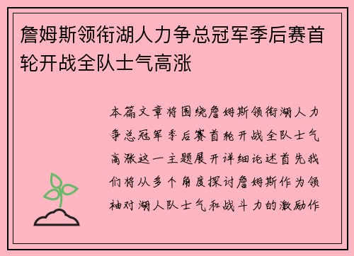 本篇文章将围绕“詹姆斯领衔湖人力争总冠军...