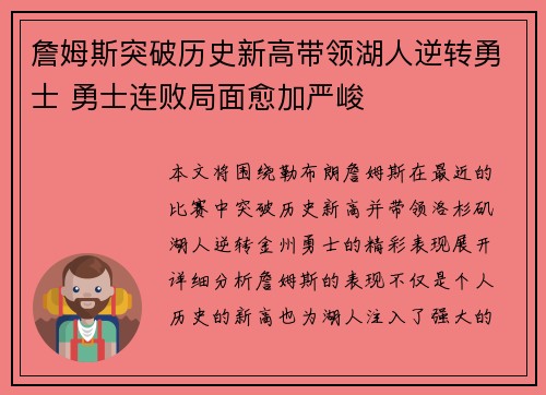 本文将围绕勒布朗·詹姆斯在最近的比赛中突...