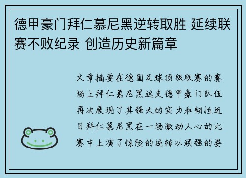 文章摘要:在德国足球顶级联赛的赛场上,拜...