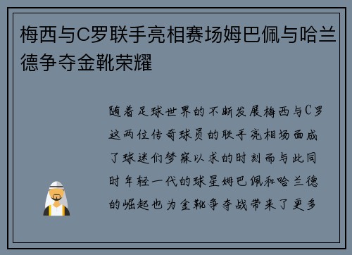 随着足球世界的不断发展,梅西与C罗这两位...
