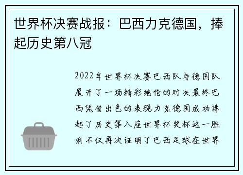 2022年世界杯决赛,巴西队与德国队展开...