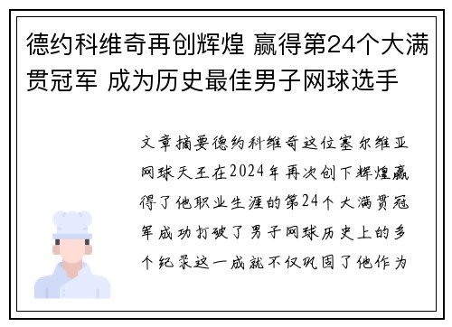 文章摘要:德约科维奇,这位塞尔维亚网球天...
