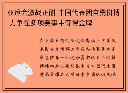 在当前举行的亚运会赛场上,中国代表团奋勇...