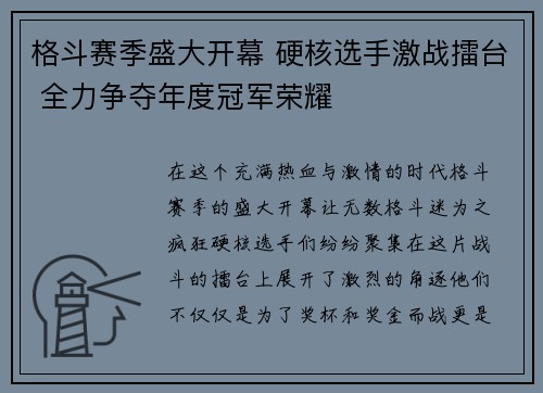 在这个充满热血与激情的时代,格斗赛季的盛...