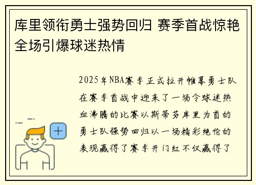 2025年NBA赛季正式拉开帷幕,勇士队...