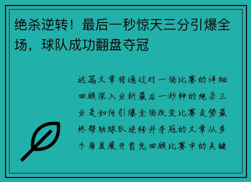 这篇文章将通过对一场比赛的详细回顾,深入...