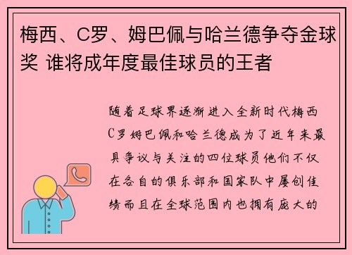 随着足球界逐渐进入全新时代,梅西、C罗、...