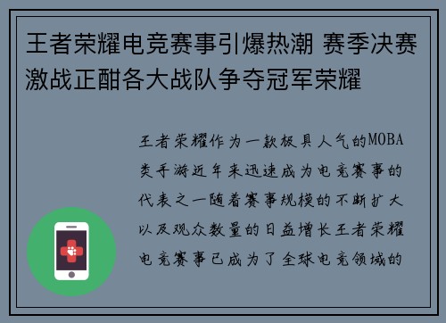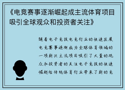 随着电子竞技(电竞)行业的快速发展,电竞...