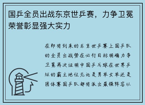在即将到来的东京世乒赛上,国乒队的全员出...