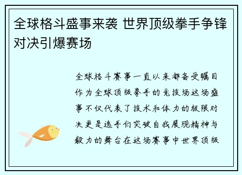 全球格斗赛事一直以来都备受瞩目,作为全球...