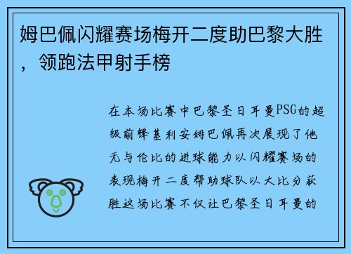 在本场比赛中,巴黎圣日耳曼(PSG)的超...