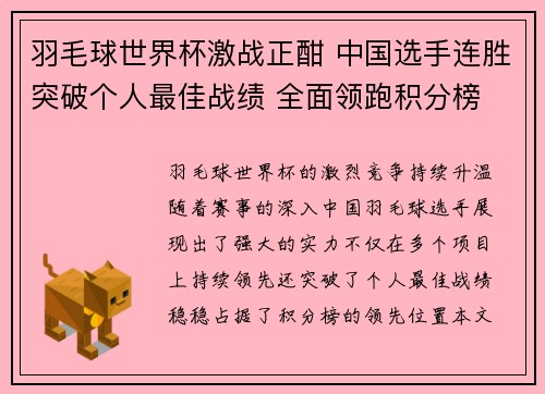 羽毛球世界杯的激烈竞争持续升温,随着赛事...