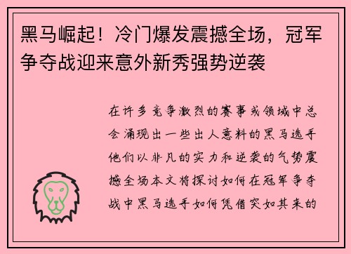在许多竞争激烈的赛事或领域中,总会涌现出...