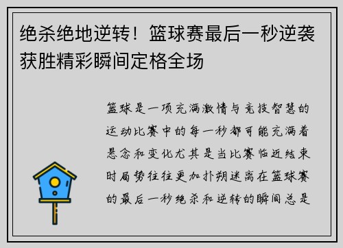 篮球是一项充满激情与竞技智慧的运动,比赛...