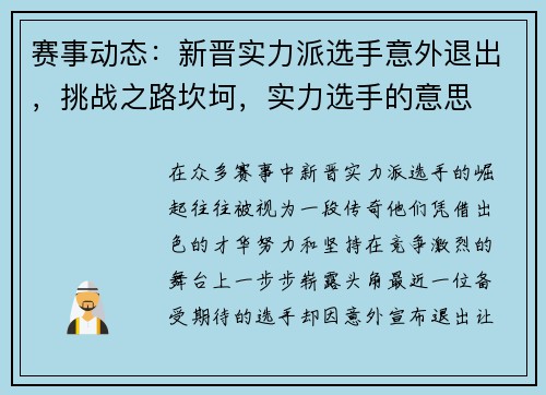 在众多赛事中,新晋实力派选手的崛起往往被...